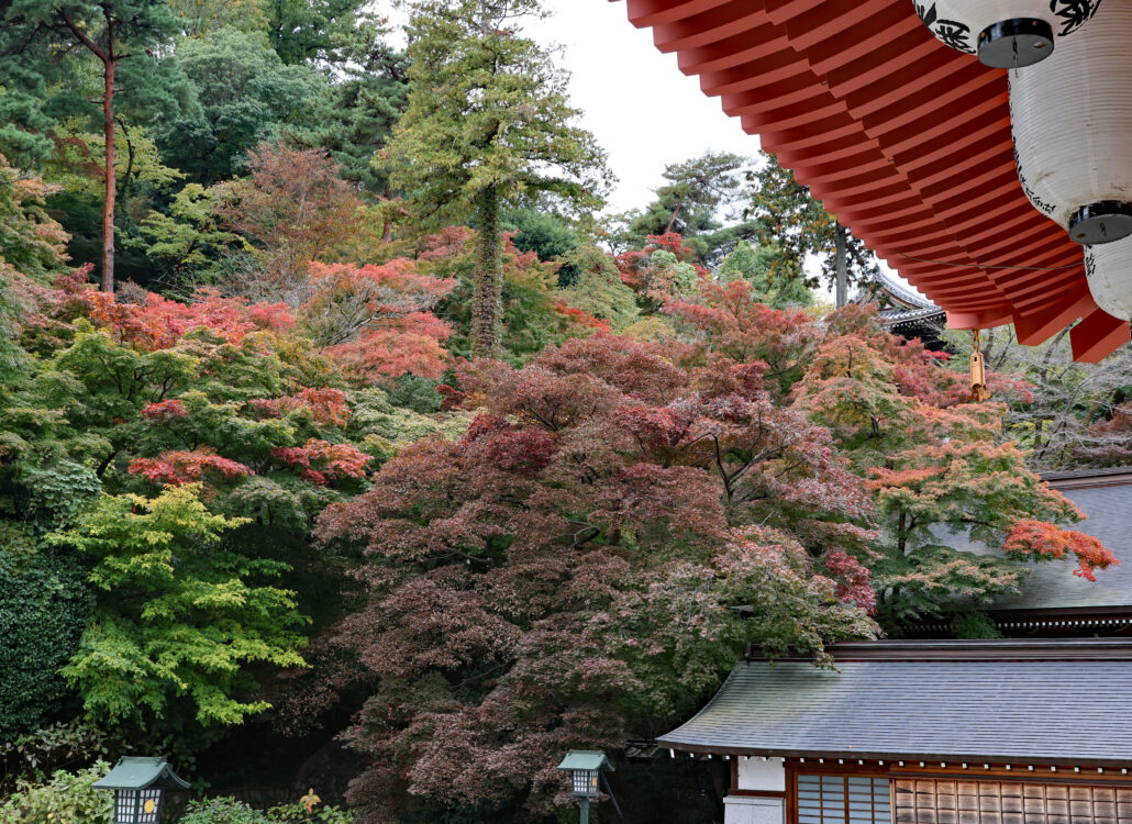 境内のモミジは色づき始めたところです。見頃は来週が見込まれます。